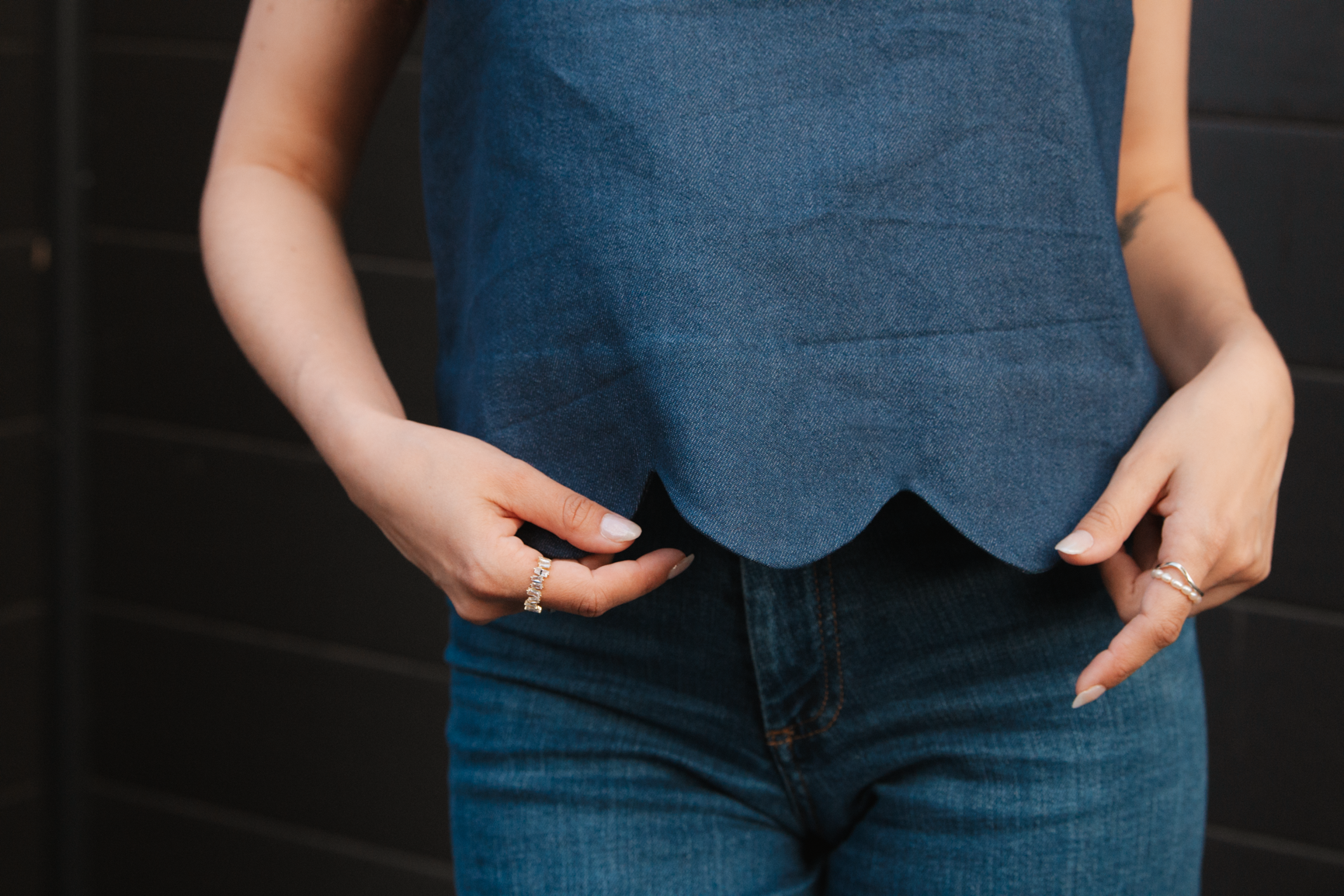 Jennifer a la coupe parfaite que j'attends d'un débardeur. C'est mon nouvel allié quand je ne sais pas quoi mettre et que je veux être confortable. En plus, il se coud très facilement et rapidement. Je prévois déjà d'en faire d'autres !