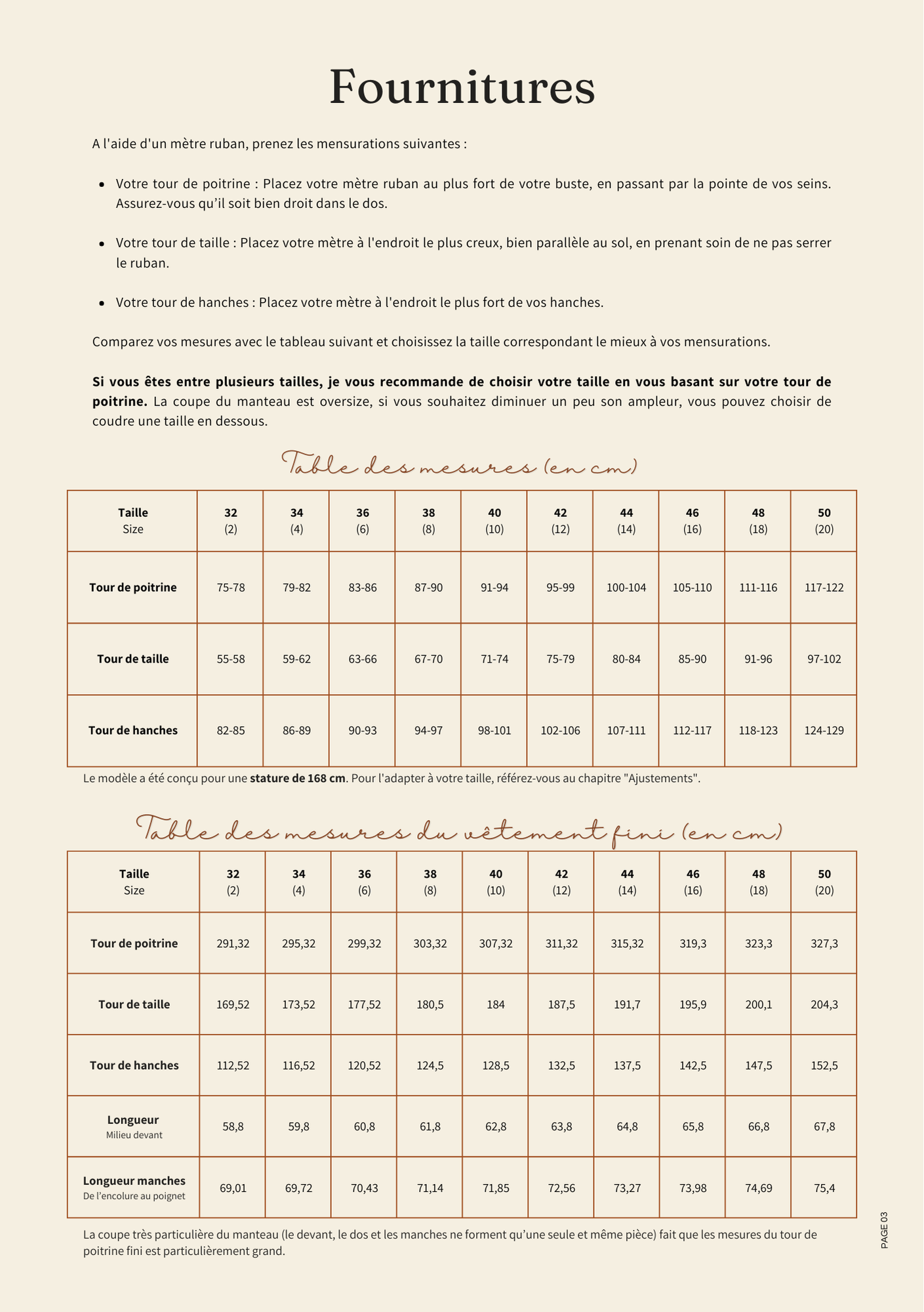 The size range from 32 to 50 ensures a tailor-made sewing experience adapted to various body shapes.