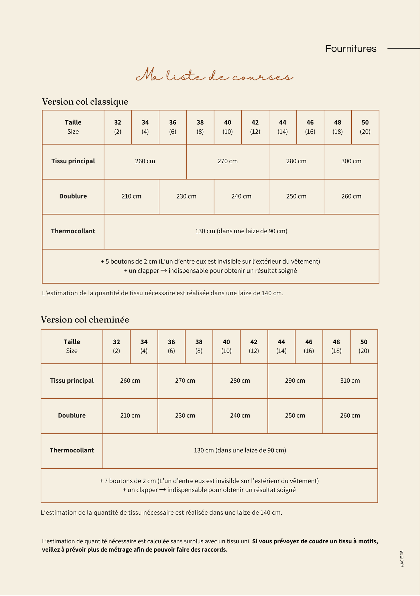- Modifier la base du patron si vous cousez un tissu à motifs.