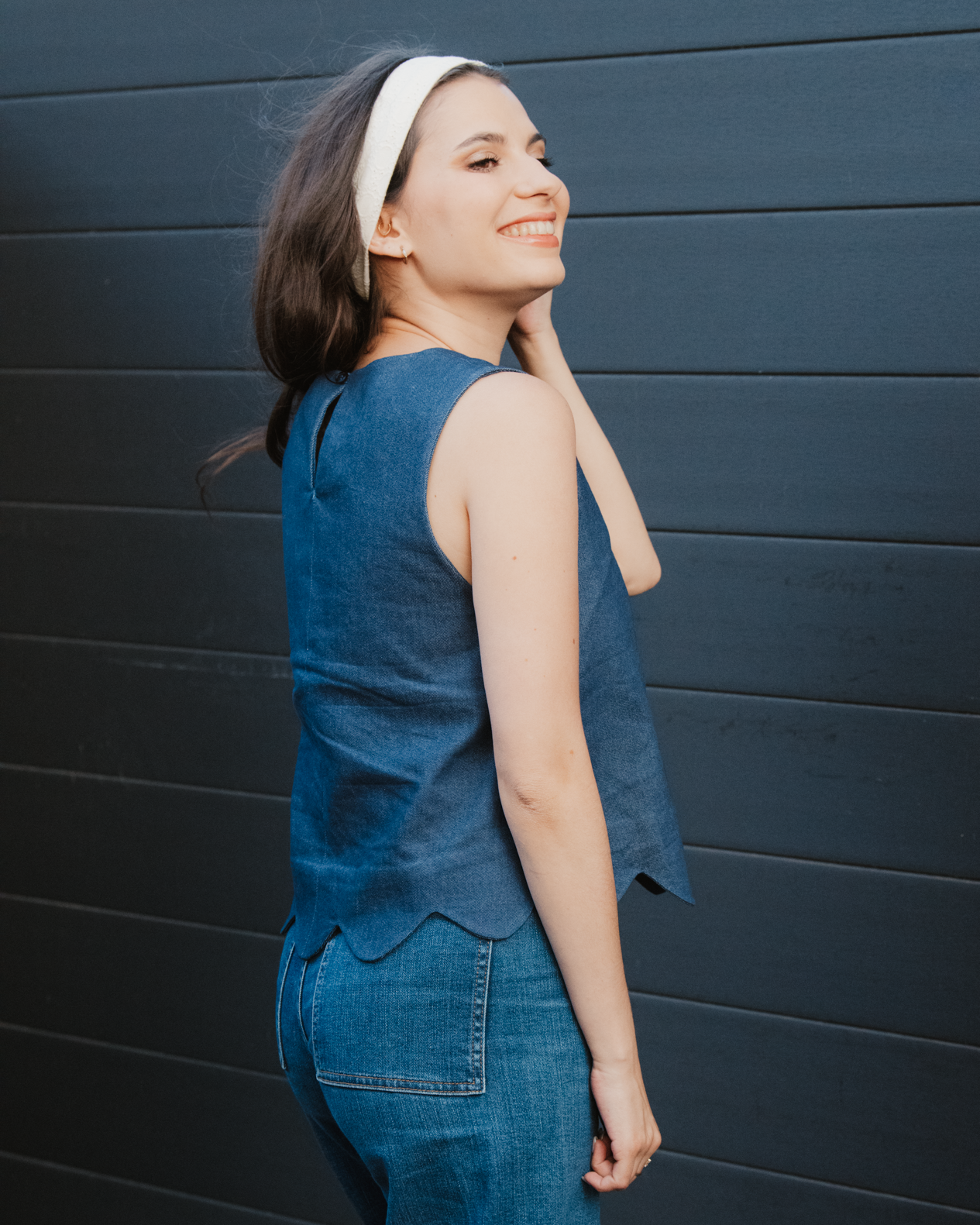 Jennifer a la coupe parfaite que j'attends d'un débardeur. C'est mon nouvel allié quand je ne sais pas quoi mettre et que je veux être confortable. En plus, il se coud très facilement et rapidement. Je prévois déjà d'en faire d'autres !