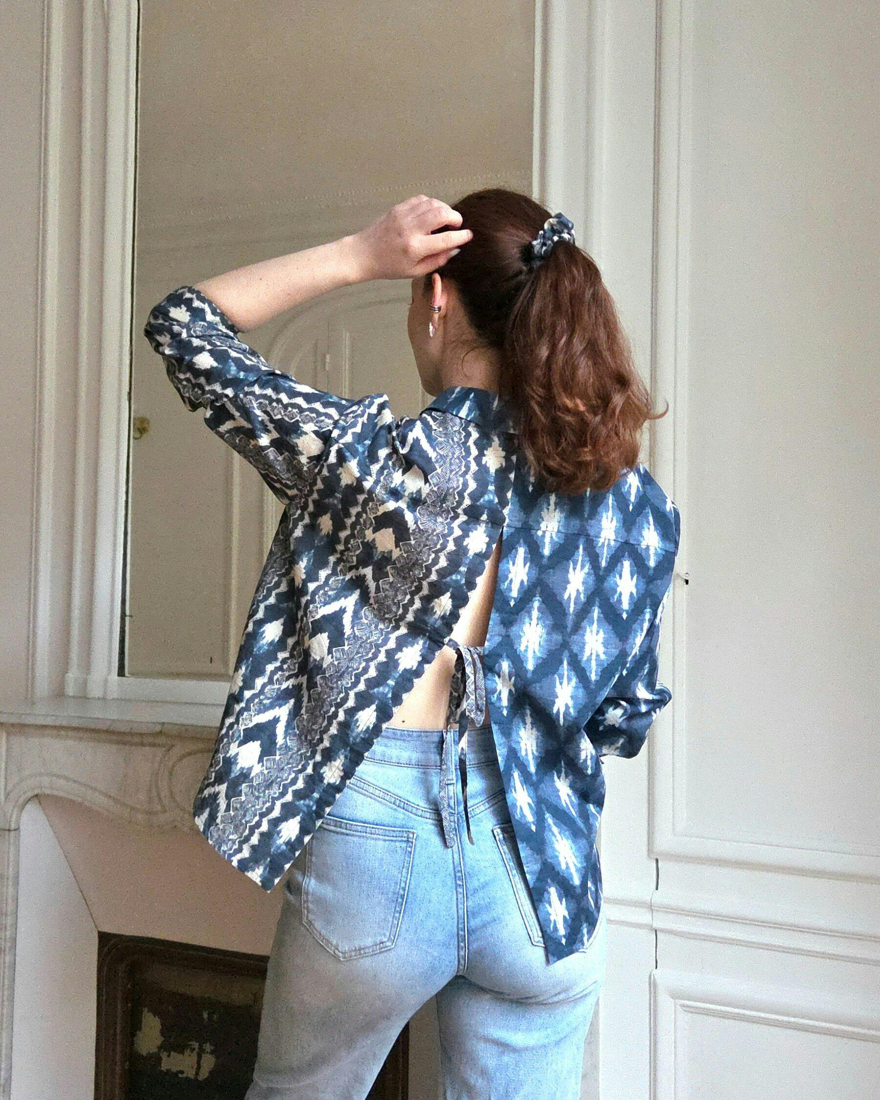 Le patron de couture Céline est une chemise oversize qui propose diverses options qui offrent des styles très différents. Elle propose trois longueurs : crop, regular ou maxi et trois types de dos : simple, fendu ou à plis. Vous pouvez également l’agrémenter d’une ou deux poches sur le devant si vous le souhaitez.