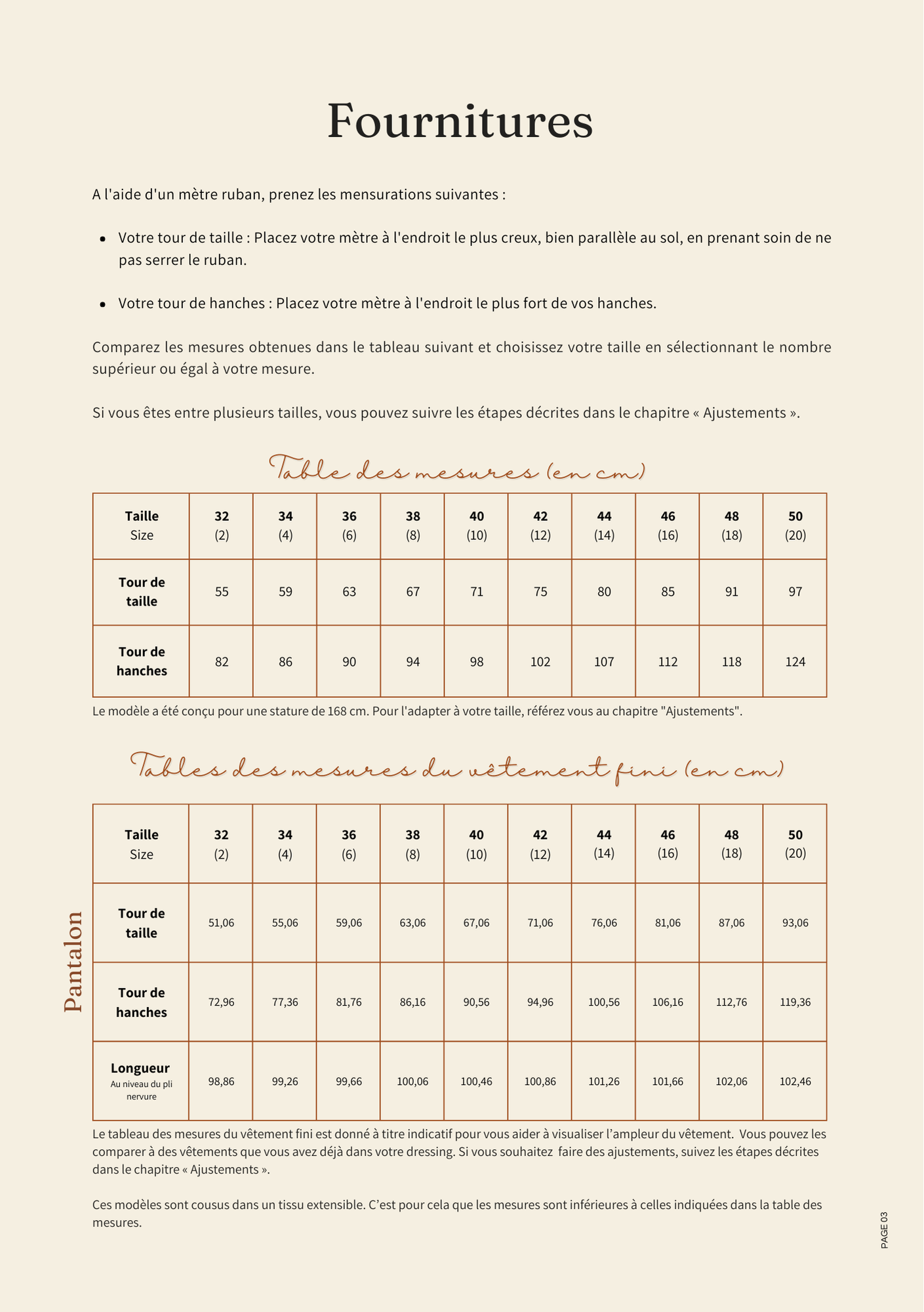 - Adapter le patron de couture si vous vous situez entre plusieurs tailles.